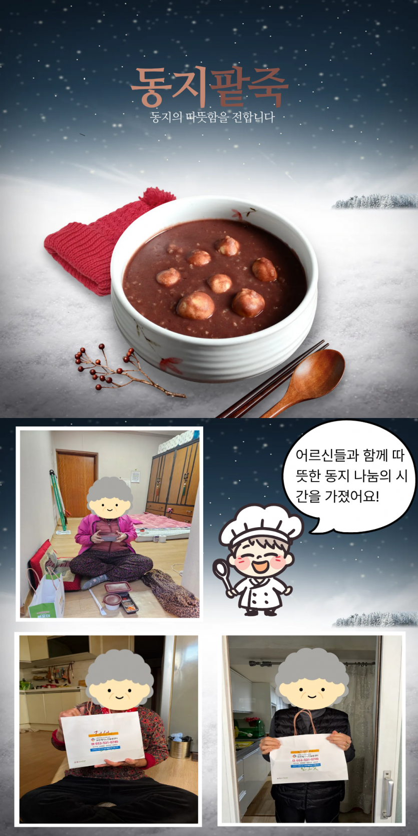 정성껏 준비한 팥죽을 드시고 어르신들께서 올겨울도 건강하고 따뜻하게 보내시길 바라며, 작은 나눔이지만 마음만은 크게 전해졌기를 바랍니다.