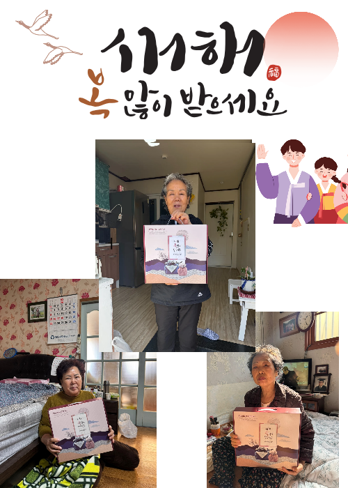 우리 센터에서는 설 명절을 맞아 어르신들 가정에 방문하여 새해 인사와 명절 선물을 지원하여 드렸습니다.