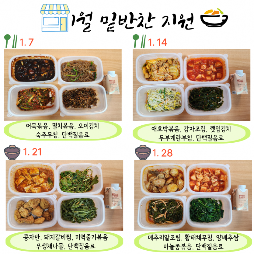 ❍ 내  용 : 밑반찬 4종, 단백질 음료 지원